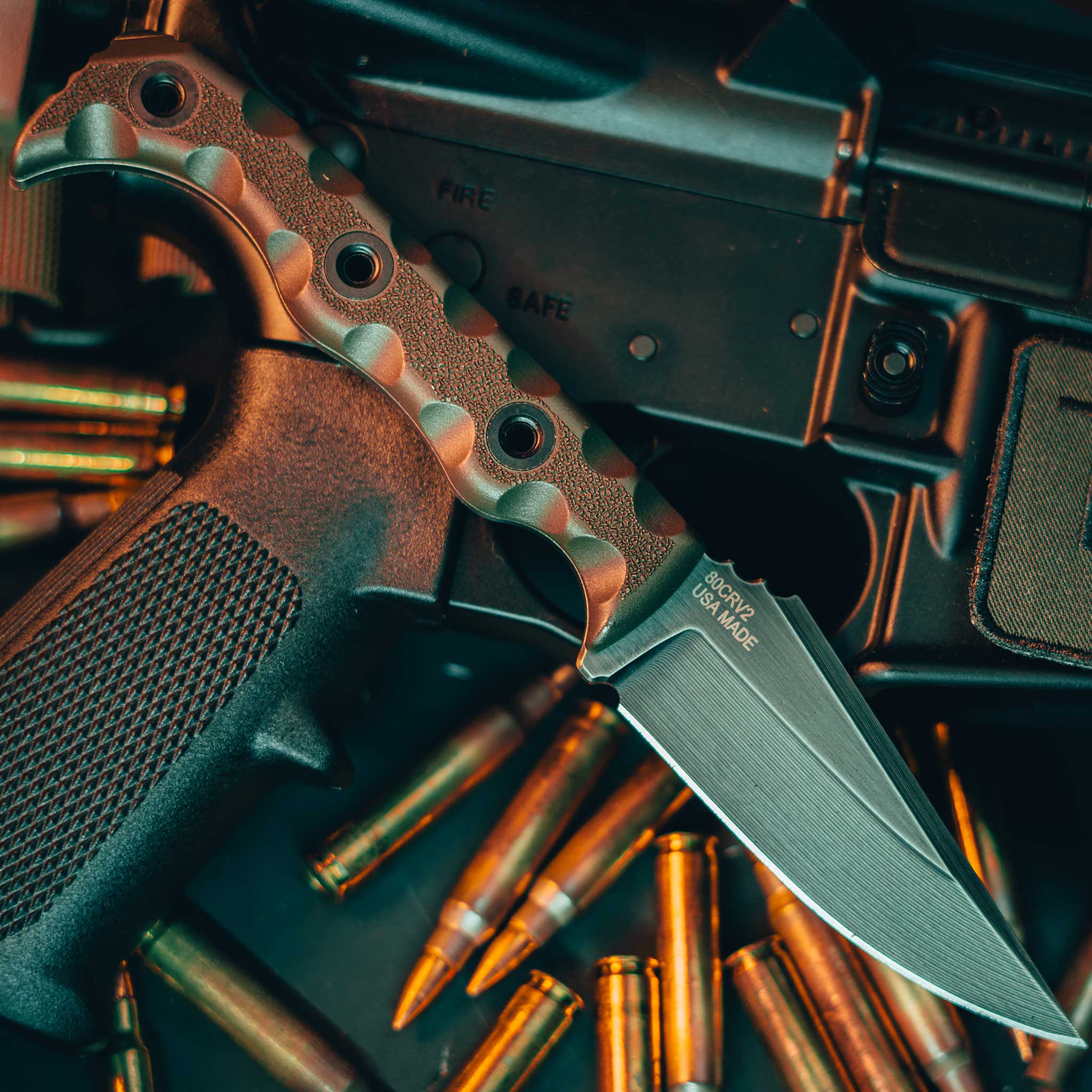 Blade Hardness: 60-62 HRC, Dual Tempered, Deep CryogenicsBlade Coating: NiB Battleworn