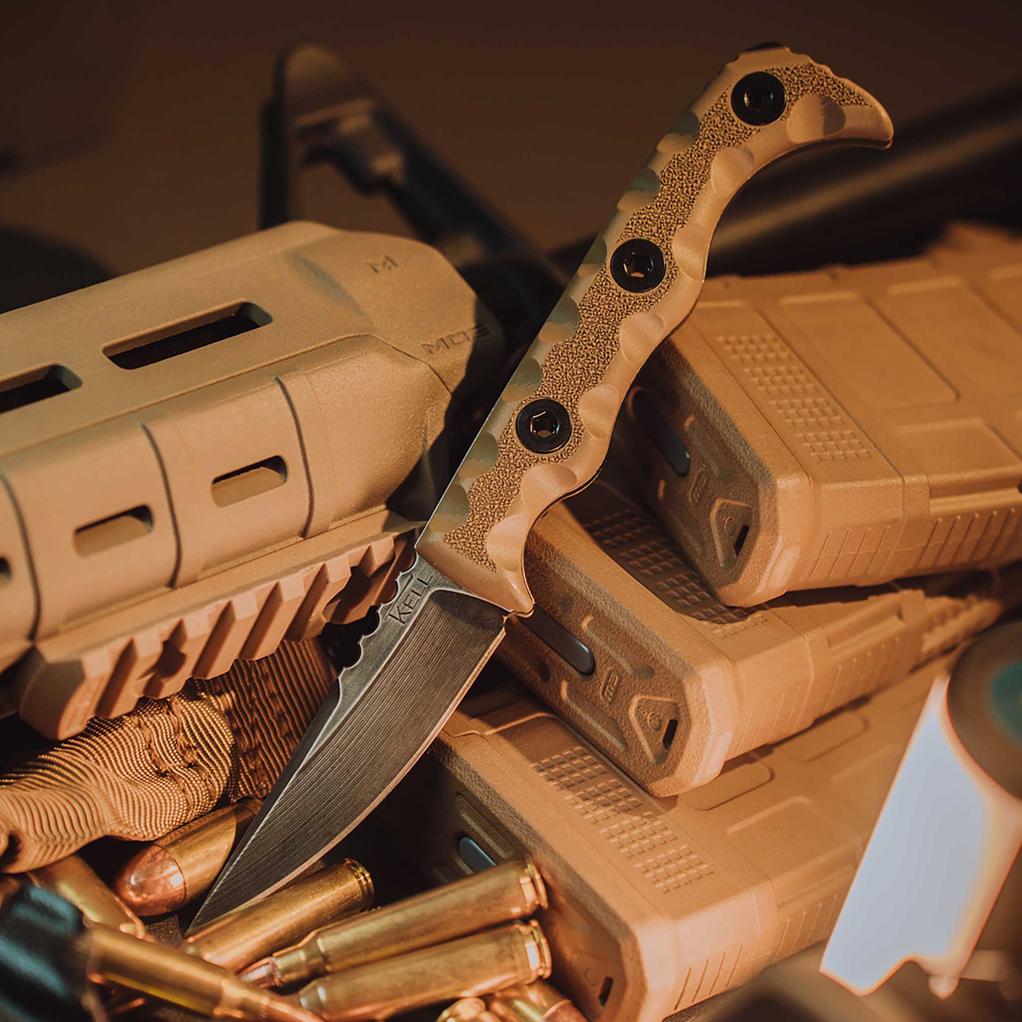 Blade Hardness: 60-62 HRC, Dual Tempered, Deep CryogenicsBlade Coating: NiB Battleworn