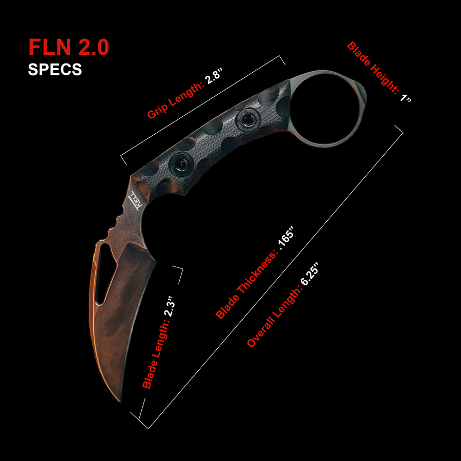 The FLN 2.0 blends elite collaboration, unmatched retention, and precision engineering into a slim, fast, and brutally capable blade. With enhanced slicing performance, improved balance, upgraded carry options, and the iconic T.Kell ring, the FLN 2.0 is purpose-built for concealment, control, and real-world effectiveness.
