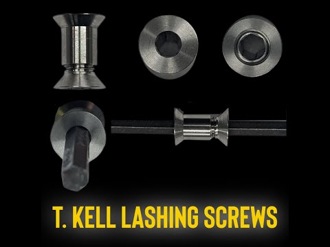 From the mind of master knife maker Tim Kell comes another innovative product never seen in the knife industry. The lashing screw was developed from a need to tie lanyards and lash a blade to a pole for making a spear but still allow for grip removal. Developed for use across the entire T. Kell line they are adjustable to material thickness from 1/8 to 3/8 inch, and can be used anywhere there is a counter sunk hole that as is 1/4". Made in America from extremally durable stainless steel, they can accommodate standard 550 cord passing thru the entire center of the screw. Simple to install and remove with common tools a 9/64 hex.