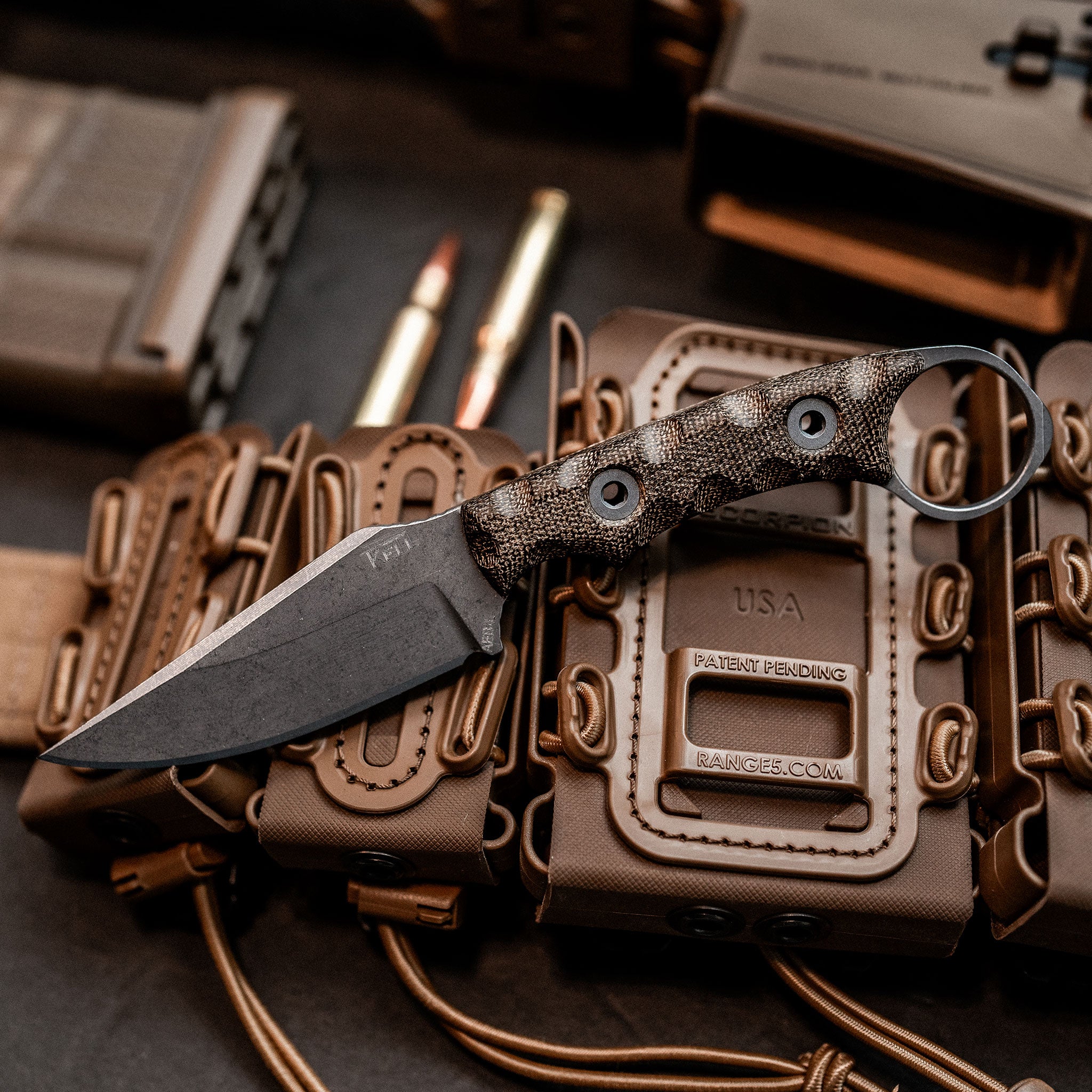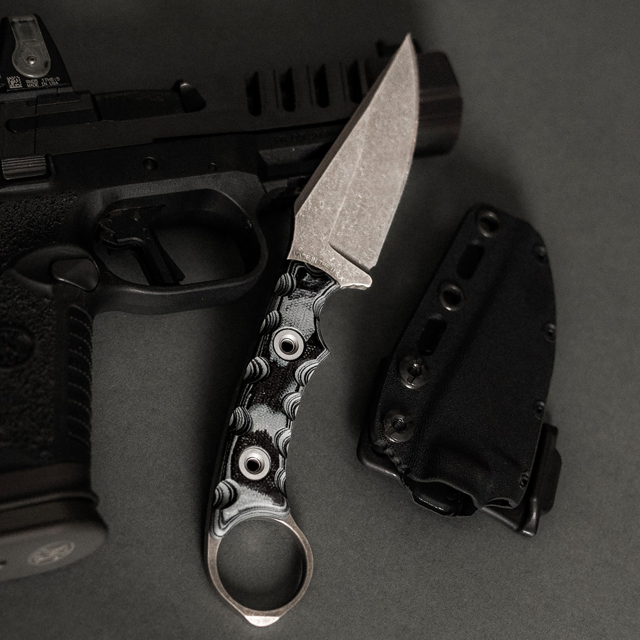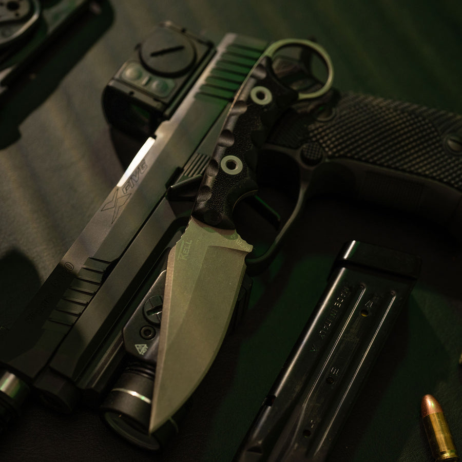 The Nightstalker CG is the Combat Grade answer for those who wanted a tougher, harder working version of the original Nightstalker without sacrificing the comfort, balance, and control that define T. Kell Knives. Built from .165 thick steel with triple tempering, deep cryogenics, and our NiB T1C, it offers extreme durability and corrosion resistance with a slick cutting feel. Interchangeable grips, precision rounding, aggressive traction points, and a tapered glass breaking ring make it a blade that performs at the highest level in both forward and reverse grips. Designed by a small USMC Veteran family company and backed by our life of the knife warranty, the Nightstalker CG delivers a shockingly comfortable and battle tough EDC experience.