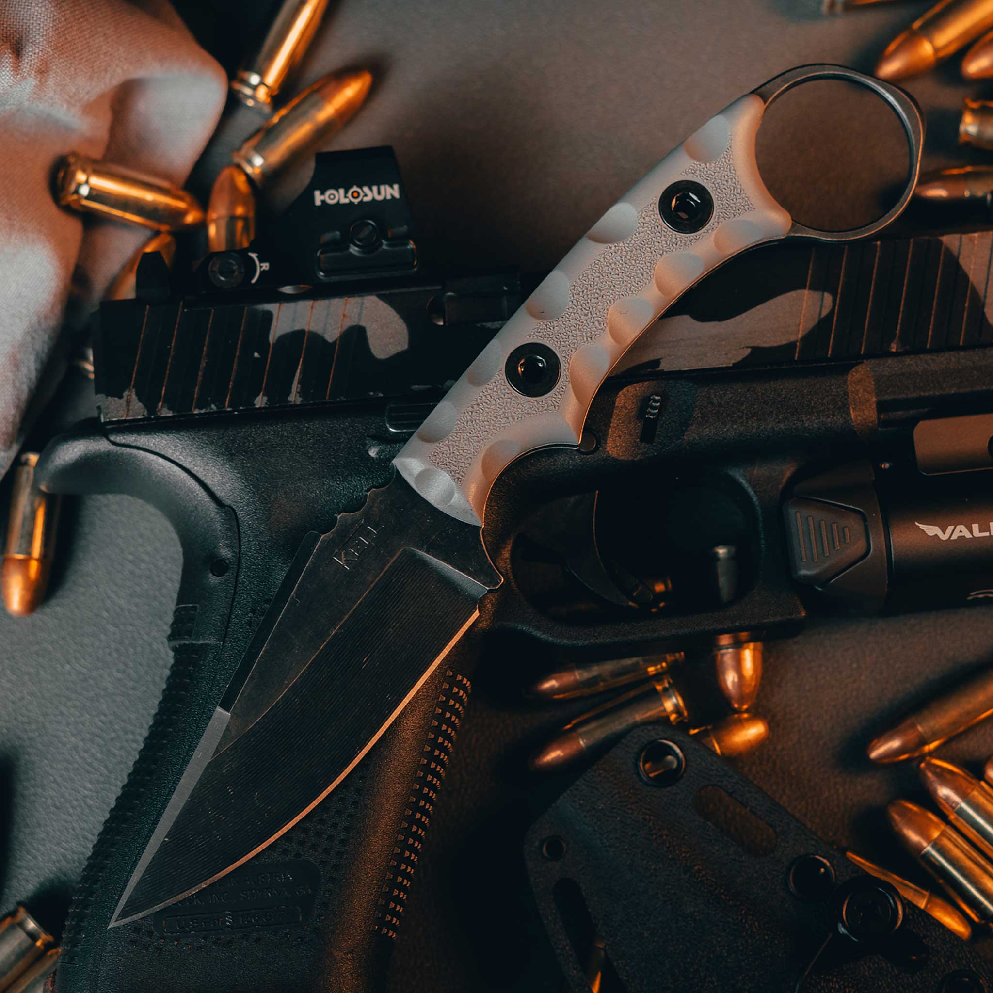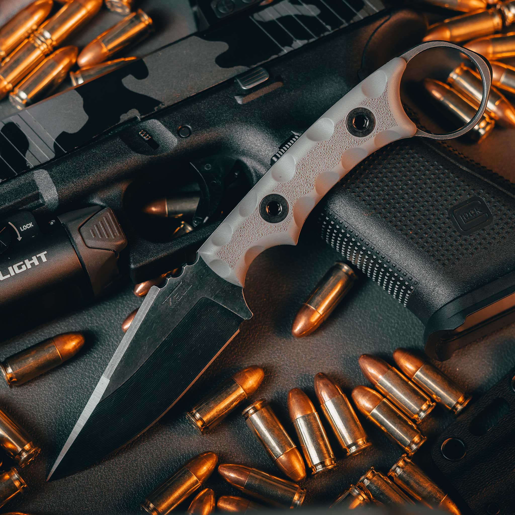 The Nightstalker CQC takes the proven Nightstalker design and enhances it with a sharpened 1.5 inch reverse edge for greater cutting and piercing efficiency. Built on the Nightstalker handle platform with a .125 inch thick blade, it delivers extreme durability, comfort, and retention through its ergonomic ring handle and integrated temple spike. The Mako style fighter blade, full swedge, and NiB coating produce a fast, balanced, and highly capable defensive tool. Compact, concealable, and backed by the Life Of The Knife guarantee, the Nightstalker CQC is built to perform in the worst conditions while carrying effortlessly in the real world.