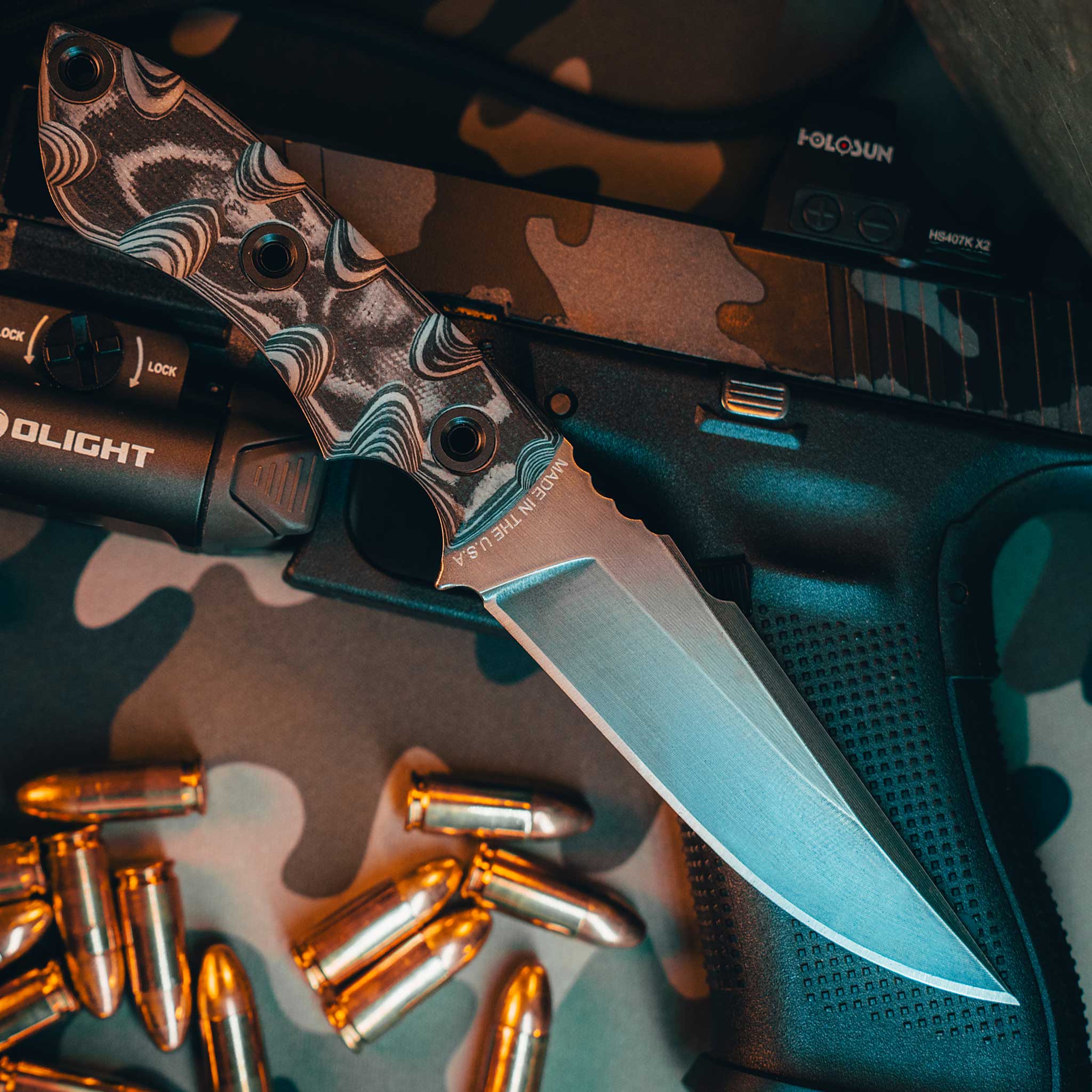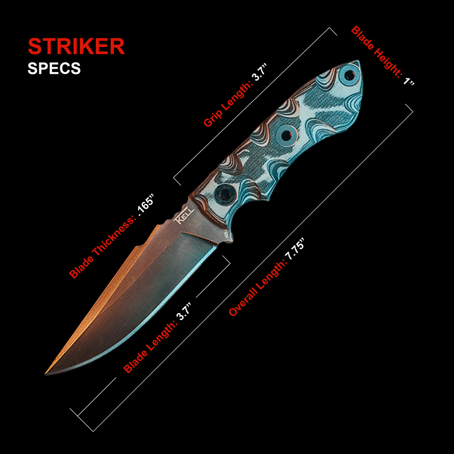Hardened and tempered to 60 HRC through a precise dual-temper heat-treat process, the Striker takes a razor-sharp edge, holds it, and stands up to extreme use for life. Finished with a Nickel Boron coating for maximum durability, the Striker is fast, strong, and visually intimidating.