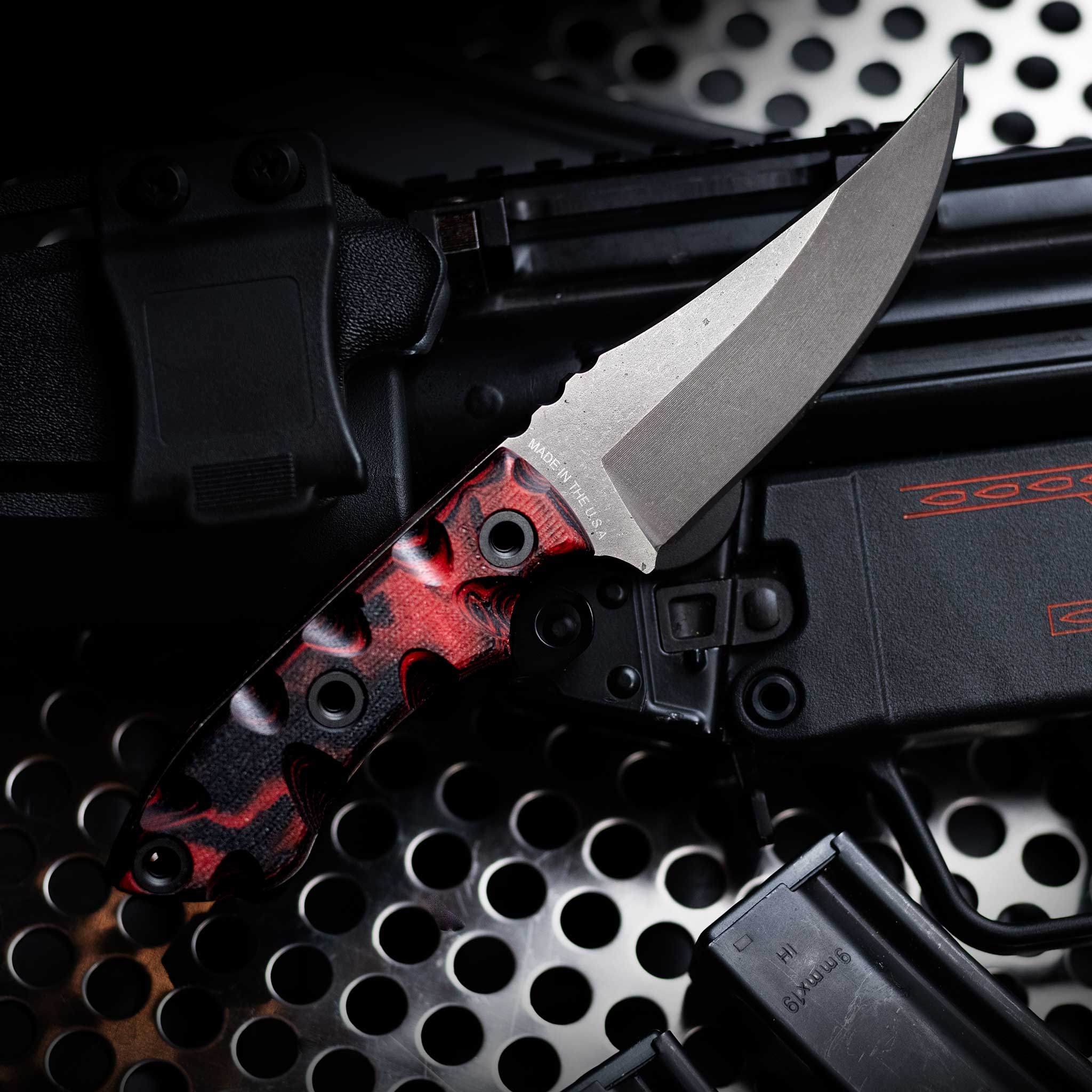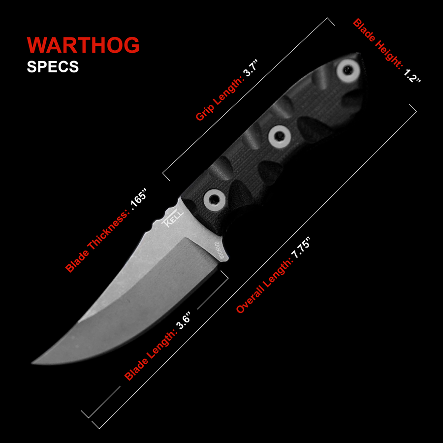 The Warthog was born from a need for a deep-bellied knife with a trailing tip for making deep, detailed cuts. With perfect balance and an extremely comfortable secure grip unlike anything you've felt, you'll instantly notice how the knife was designed to feel like a part of your hand. Protect yourself, clean game animals, prepare fish, slice veggies, make feather boards all day long.